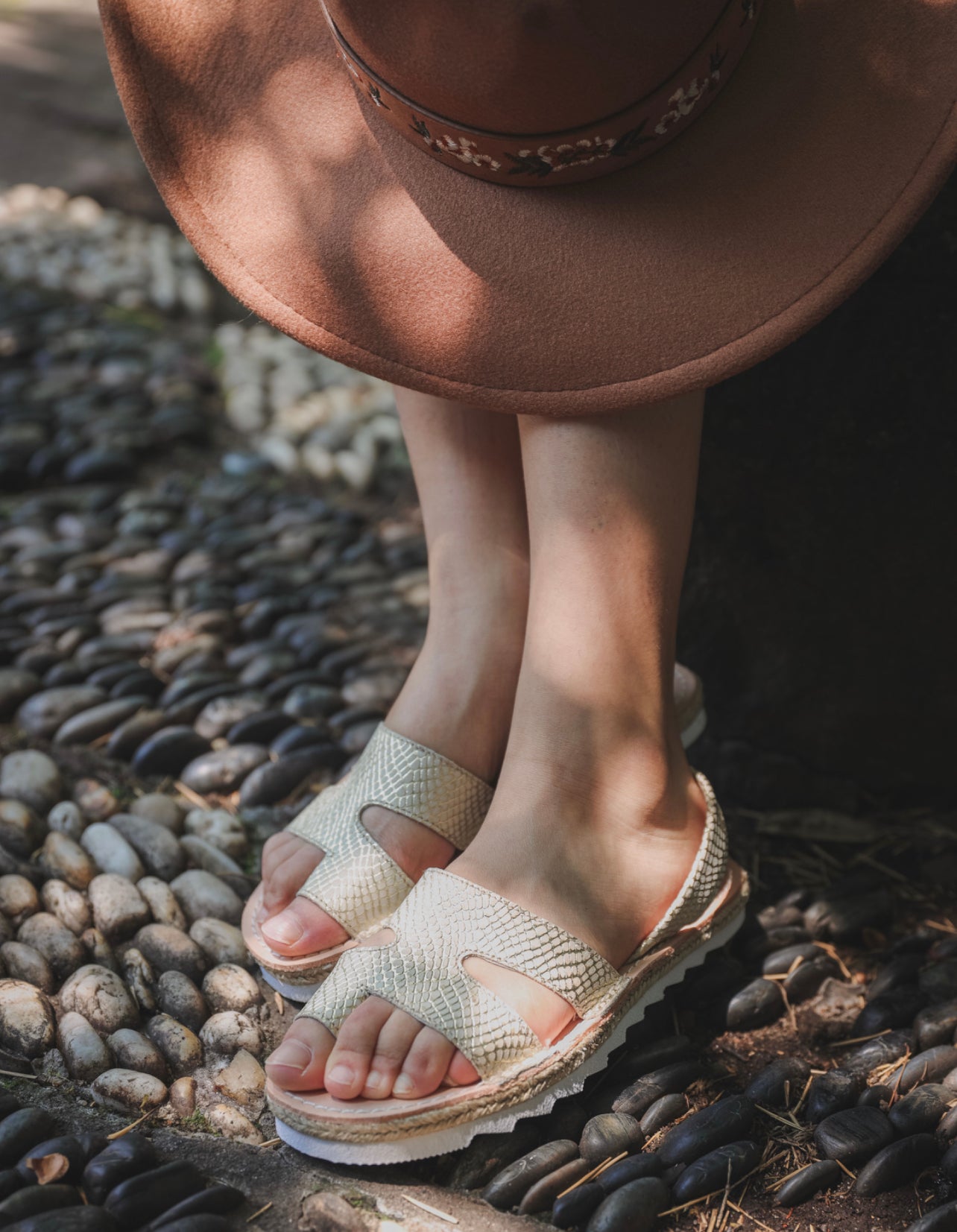 Margarita sandal-a fresh take on the traditional avarca. Made from soft, snake-effect leather, Margarita is designed for women who love a more open and alluring style.