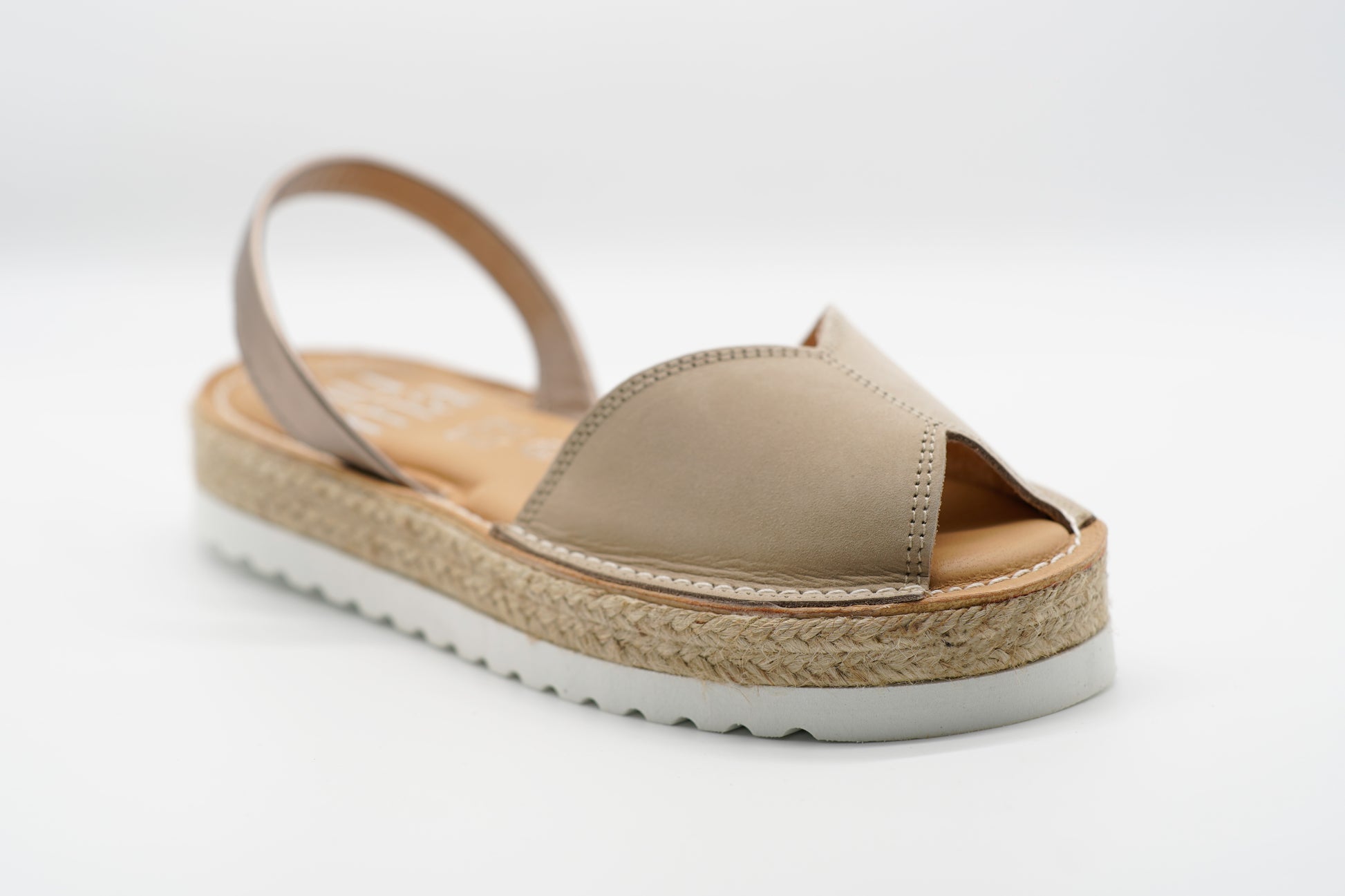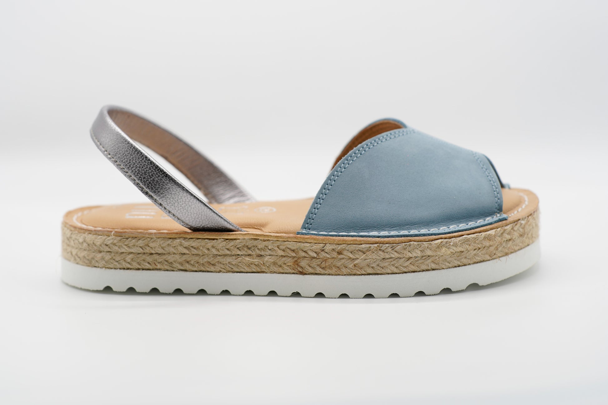 The Nathy model from the Metamorphosis collection is a true embodiment of transformation and refined detail. With its innovative butterfly-shaped strap resting on a jute rope platform, it seamlessly merges natural elegance with sophistication. Crafted from soft Nobuck leather in elegant Jeans Blue and Beige, each strap is delicately highlighted by a metallic leather accent, adding a touch of subtle luxury.